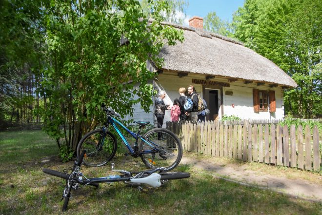Tutaj zwiedzić można dom z 1962 roku. Kryta strzechą chata oraz jej wyposażenie robi niezwykłe wrażenie. Jak byśmy odwiedzili dom dziadków. Przy nim rabaty loksów, cynii, malw i dalii. To jeszcze tutaj na łąkach można zobaczyć stogi siana ułożone na drewnianych żerdziach. W centrum Polski nadal są widoki, które powoli przechodzą do historii.