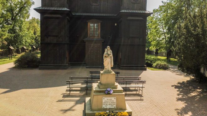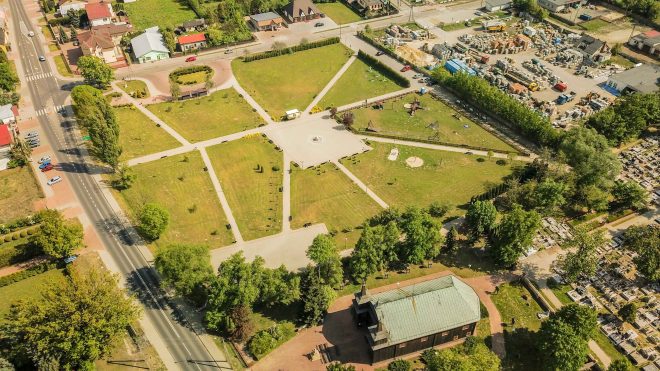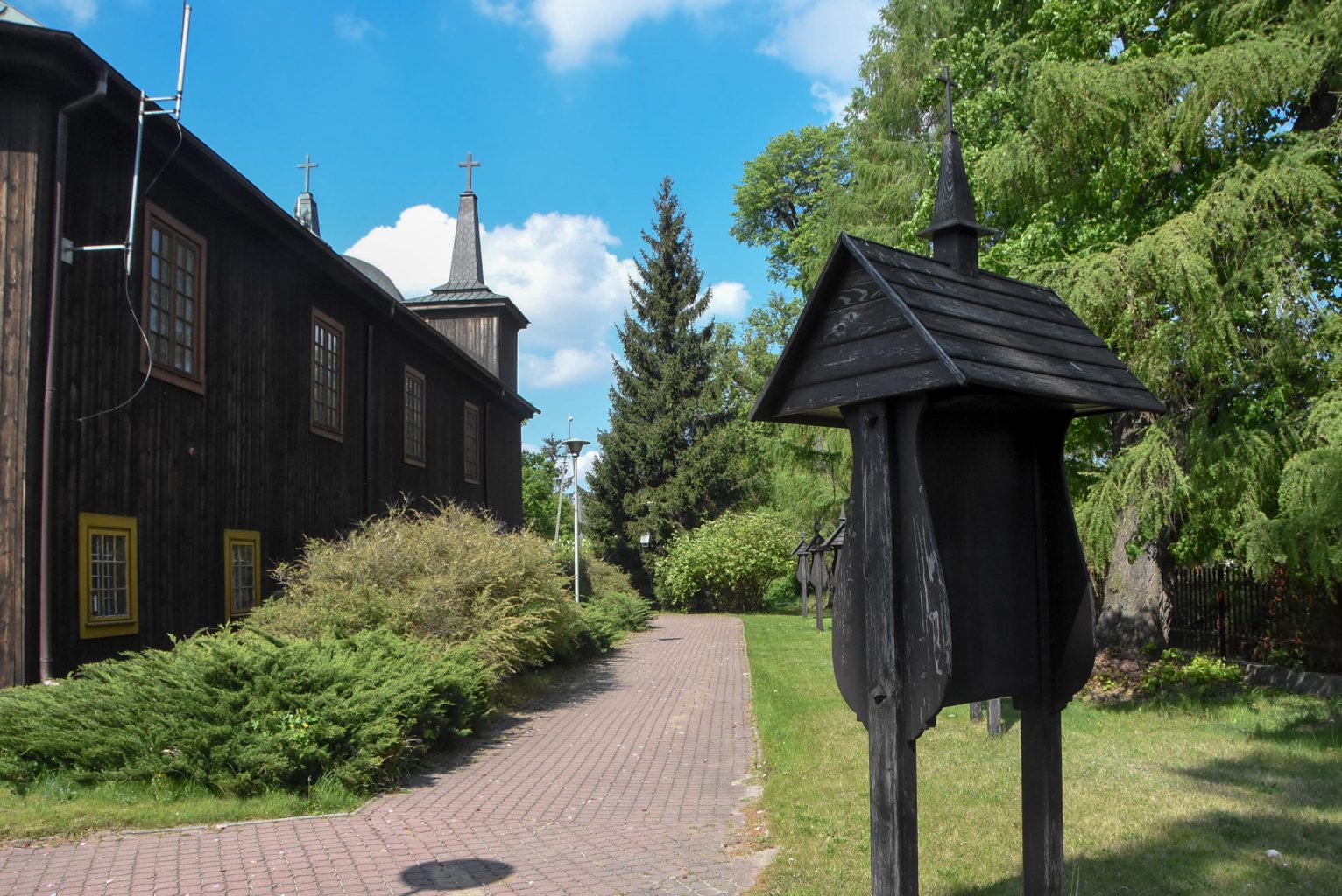 W pobliżu kościoła wytchnienie da ładny skwer. Atrakcją dla dzieci z pewnością będzie plac zabaw.