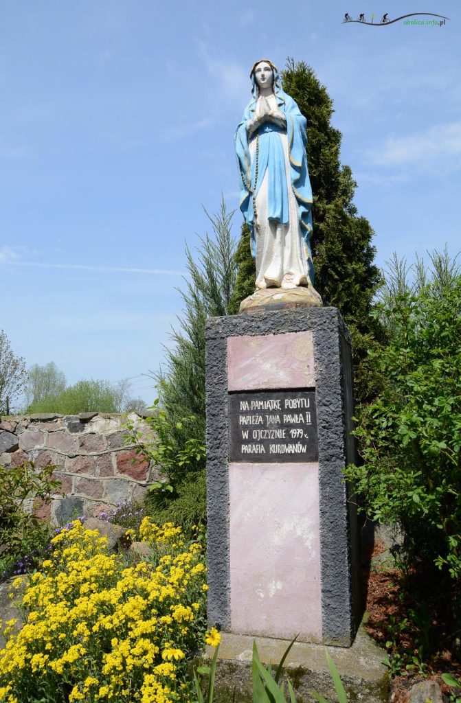 Na terenie kościoła znajduje się też krzyż nagrobny Hipolita Prussa Słubickiego, dziedzica Kurdwanowa. Jest też figura Matki Bożej postawiona na piątkę wizyty Jana Pawła II w Polsce w 1979 roku oraz rzeźba anioła wykonana przez miejscowego artystę z okazji 400-lecia parafii.