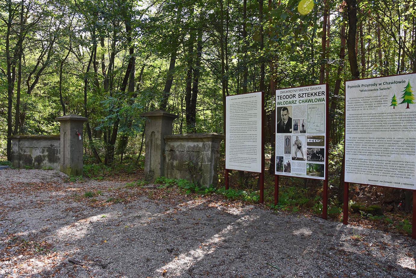 Tablica stojąca przed wjazdem do dawnej posiadłości Teodora Sztekkera w Chawłowie.