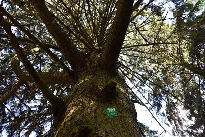 Niezwykłe są świerki sadzone ręką mistrza. Choć drzewa to świerk pospolity ich występowanie na terenie Mazowsza jest nietypowe. Strzeliste, okazałe drzewa mają około 30 metrów i górują nad resztą drzewostanu. Zostało ich osiem. Są pomnikami przyrody. Prowadzą do nich drogowskazy i odnalezienie ich nie jest trudne.
